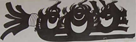 に見立てた三重の円と、燃え上がる炎を墨で描かれている。